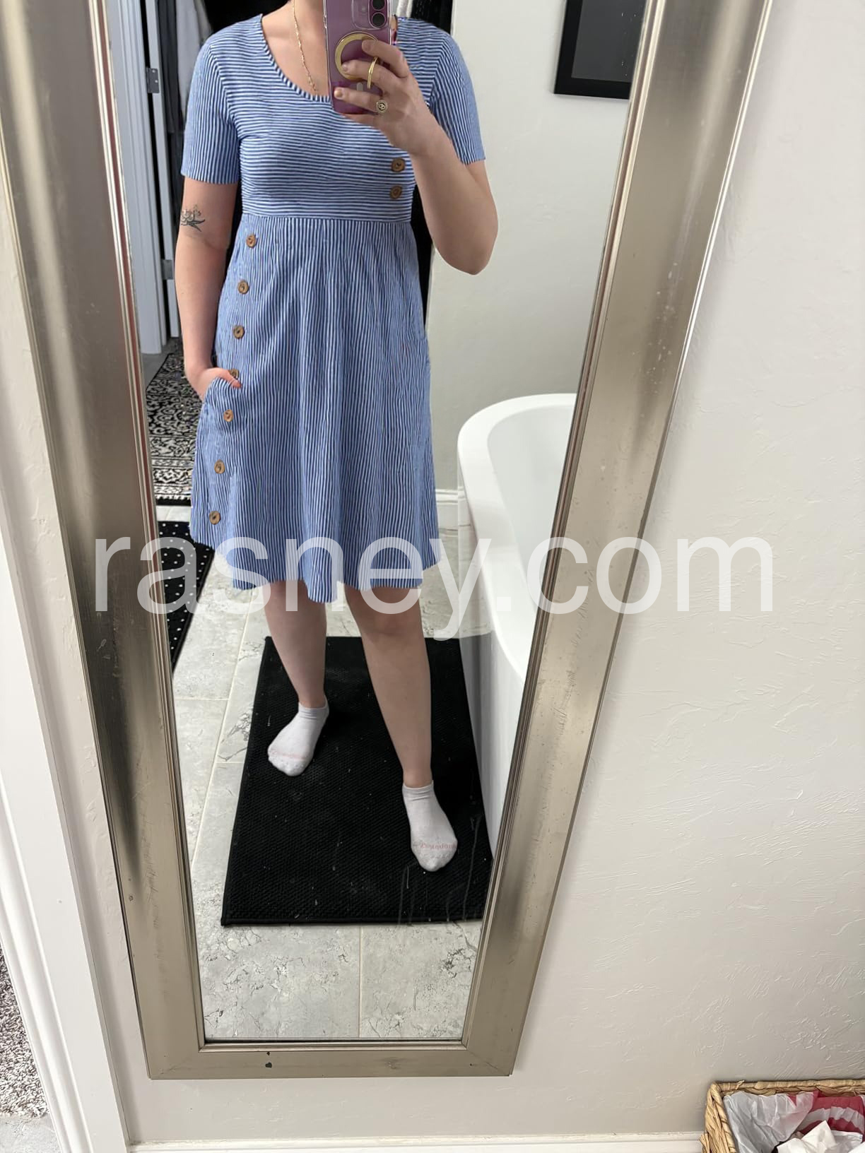 Practical meets stylish with the addition of convenient side pockets, ideal for stashing small essentials. Whether you're heading out for a casual brunch, a day at the office, or a weekend stroll, this versatile dress can be dressed up with heels or kept casual with sandals.