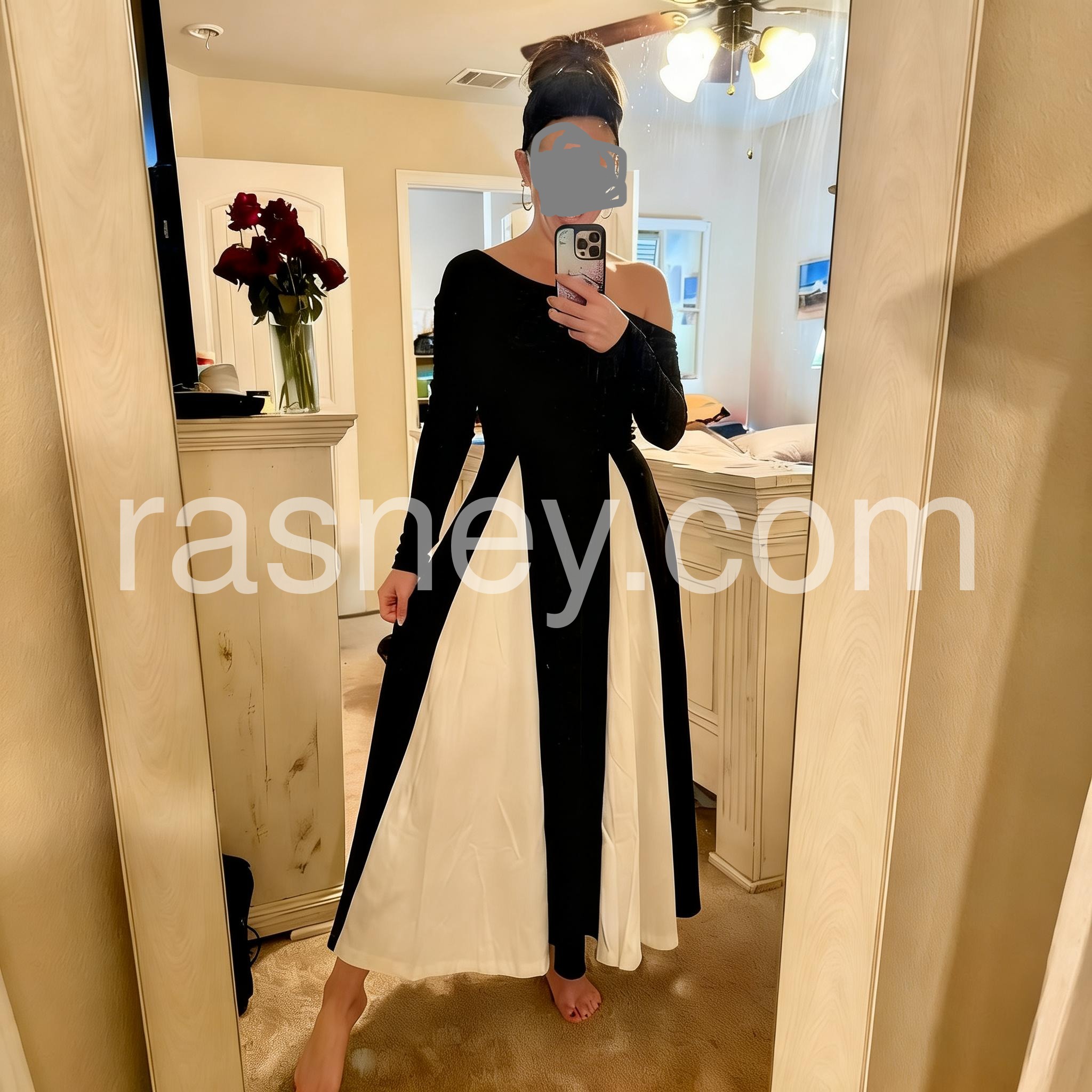 Black And White Color Block Maxi Dress
