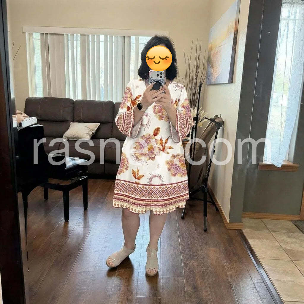 Unique Floral Print Long Sleeve Mini Dress