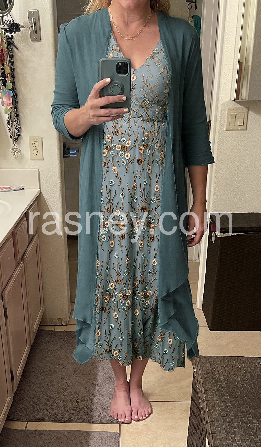 Youthful Ditsy Floral Print Maxi Dress With Thin Jacket Two Piece Outfits