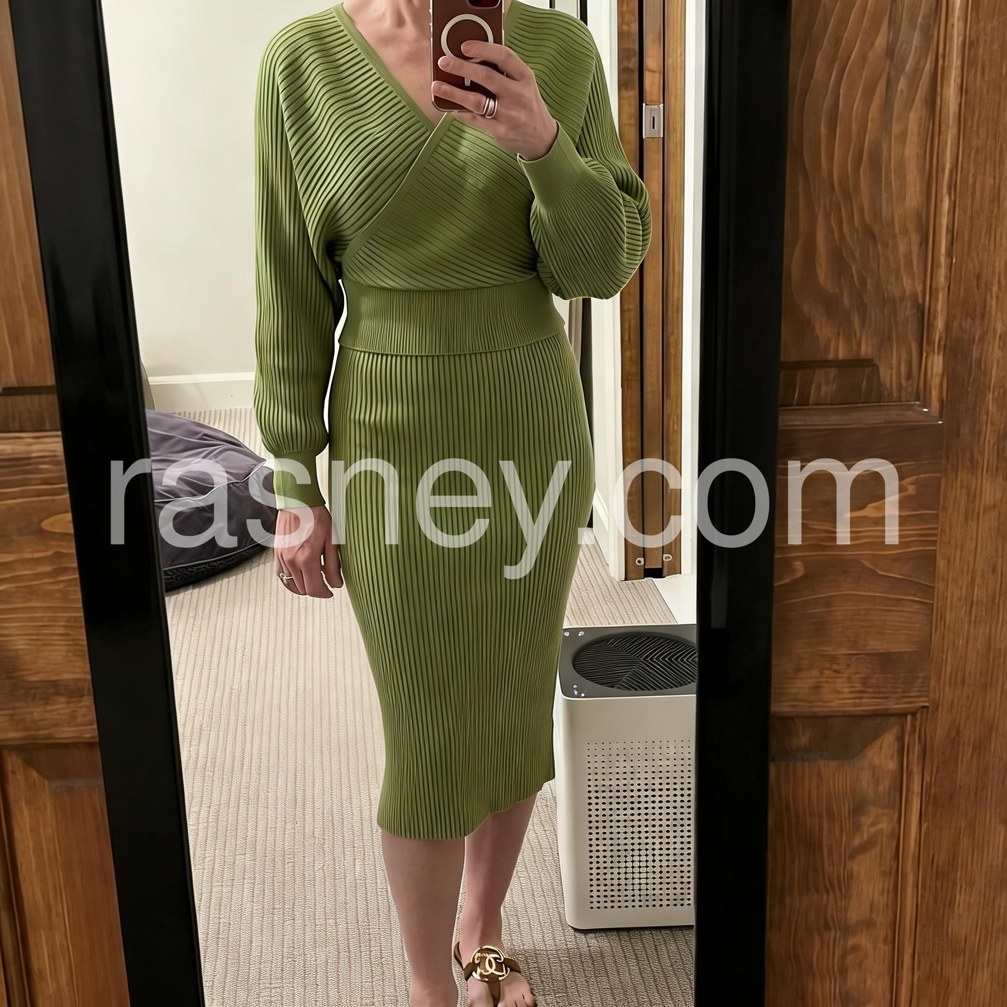 Upgrade your winter wardrobe with our Green Long Sleeve Plain Midi Sweater Dress. The stylish midi length and comfortable long sleeves make it perfect for any occasion. Stay warm and fashionable with this versatile piece.
