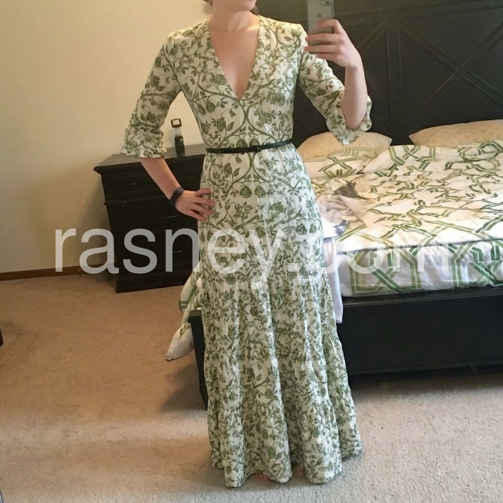 Green V-Neck 3/4 Sleeve Maxi Dress
