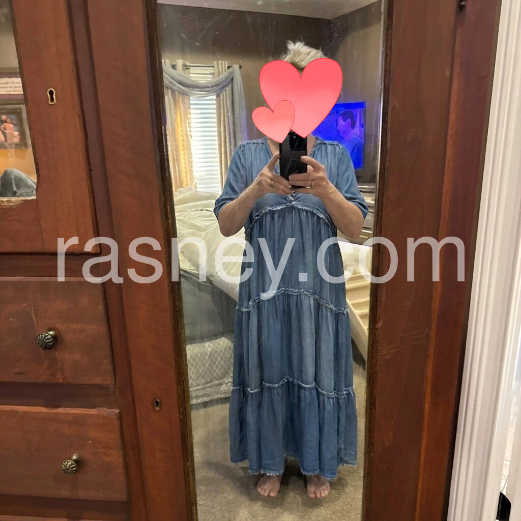 Blue Denim Plain 3/4 Sleeve Maxi Dress